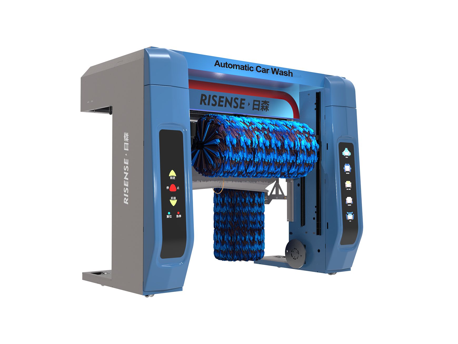 五刷往復(fù)式洗車機(jī)、泡沫洗、水蠟洗、4風(fēng)機(jī)風(fēng)干。可搭配智能自助系統(tǒng),實(shí)現(xiàn)無人值守智能洗車。